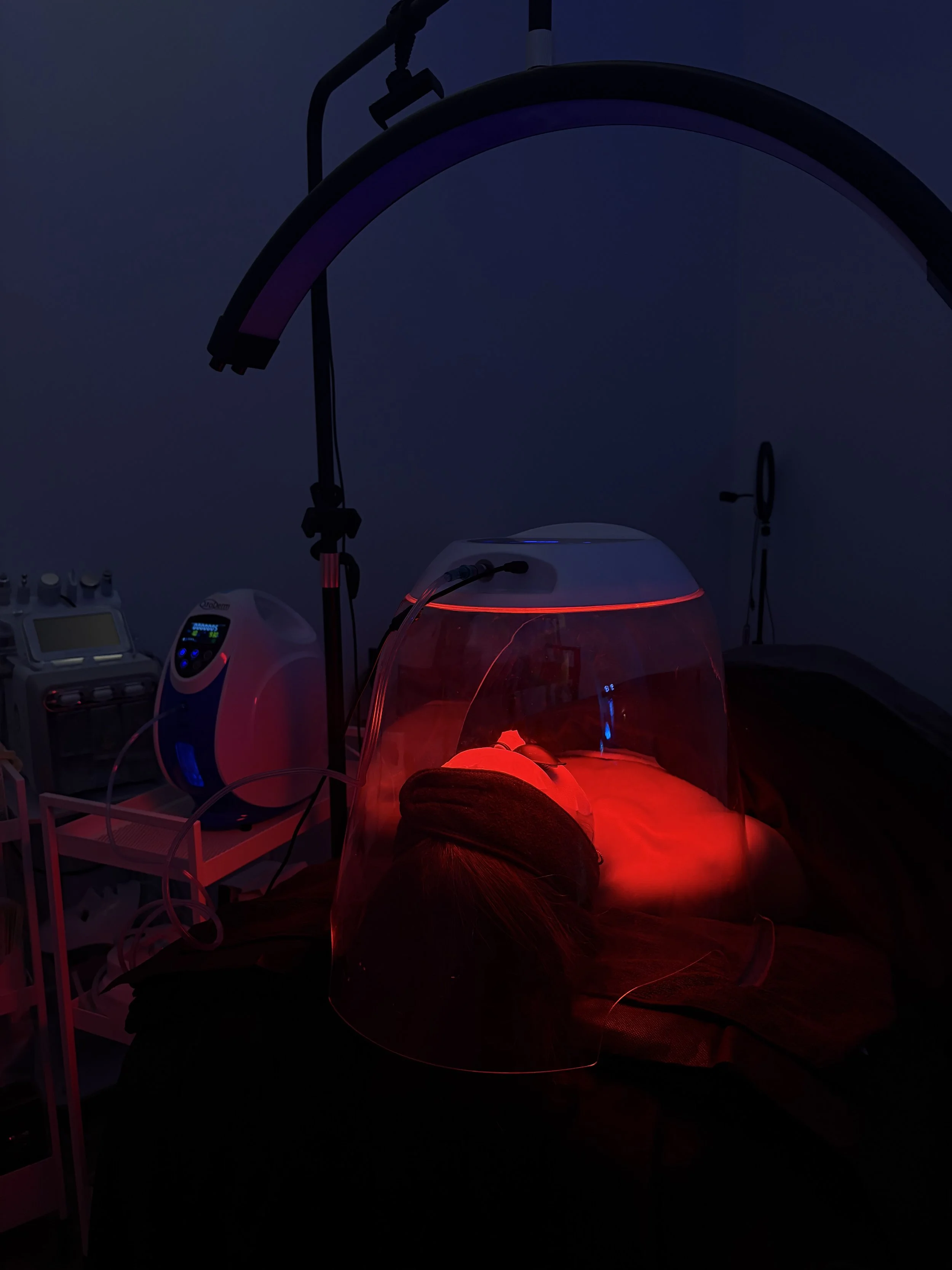 • Oxygen LED dome therapy (92%+ pure oxygen)